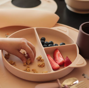 Assiette en silicone avec ventouse gris perle